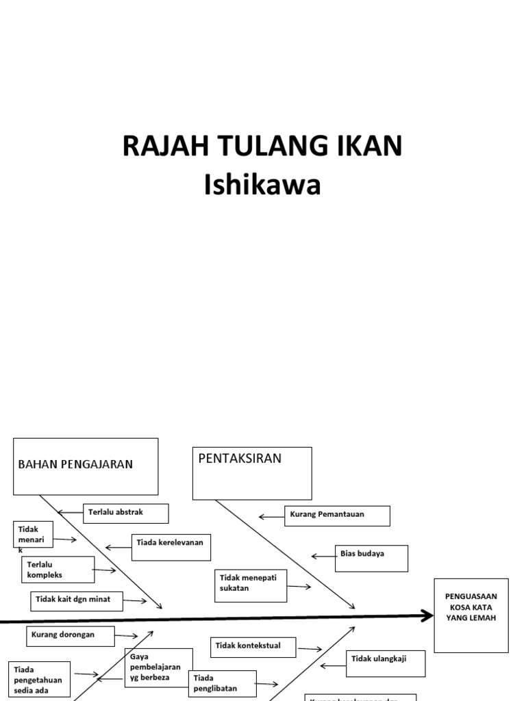 Posisi antara punca kecil dan punca besar utama betul kedudukanya page6. Gambarajah tulang ikan rajah ishikawa. Diagram tulang ikan atau fishbone adalah salah satu metode tool di dalam meningkatkan kualitas.